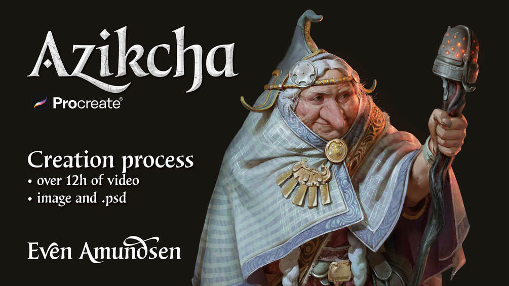 This is a sample with over 12 hours of recorded streaming, showing the entire process in real-time, and a video about half an hour long with a narrated speed process exported from Procreate where I describe the creation process. This not to be confused with a tutorial as more of a guide through my thought process and workflow, where I answer questions along the way.